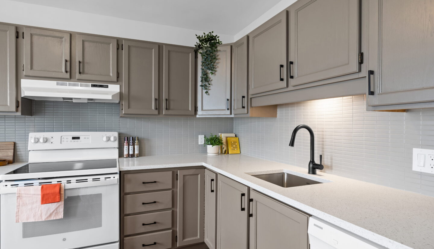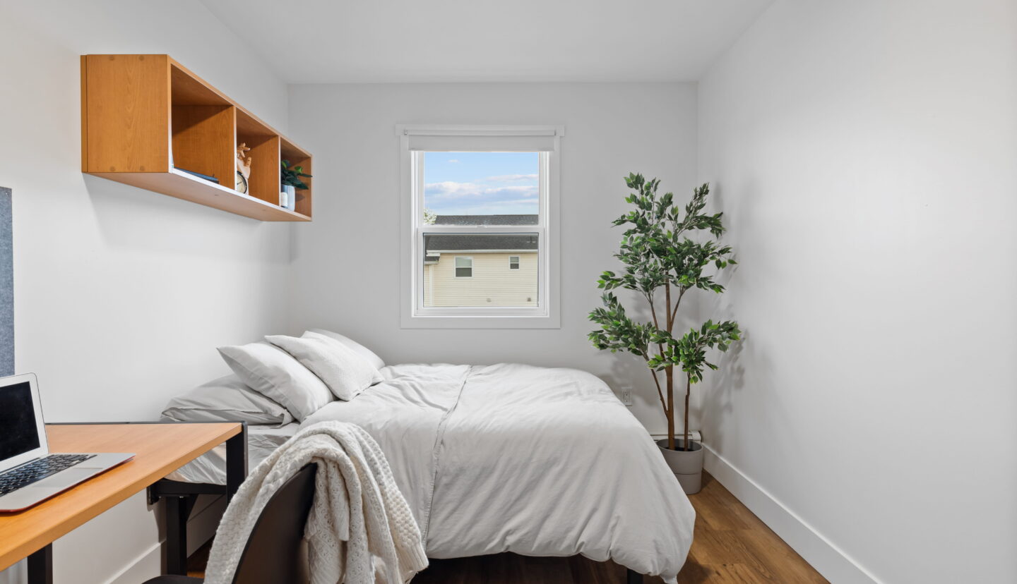 Our apartments each come fully-furnished with a soft corduroy couch and cozy armchair, dining room table and chairs, kitchen appliances (including a dishwasher!) and lots of counter space, and so much more. We’ve custom-built and rigorously tested all our furnishings to ensure their quality and ability to withstand the test of time, and the tumultuous nature of student living.